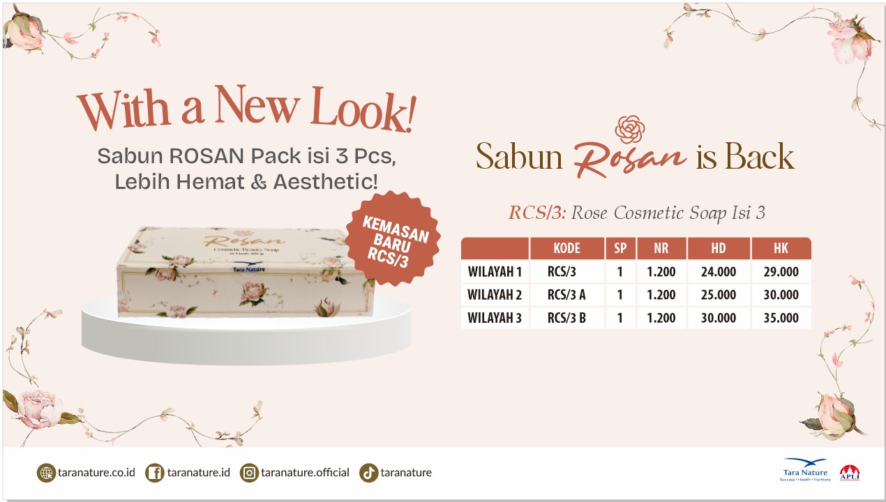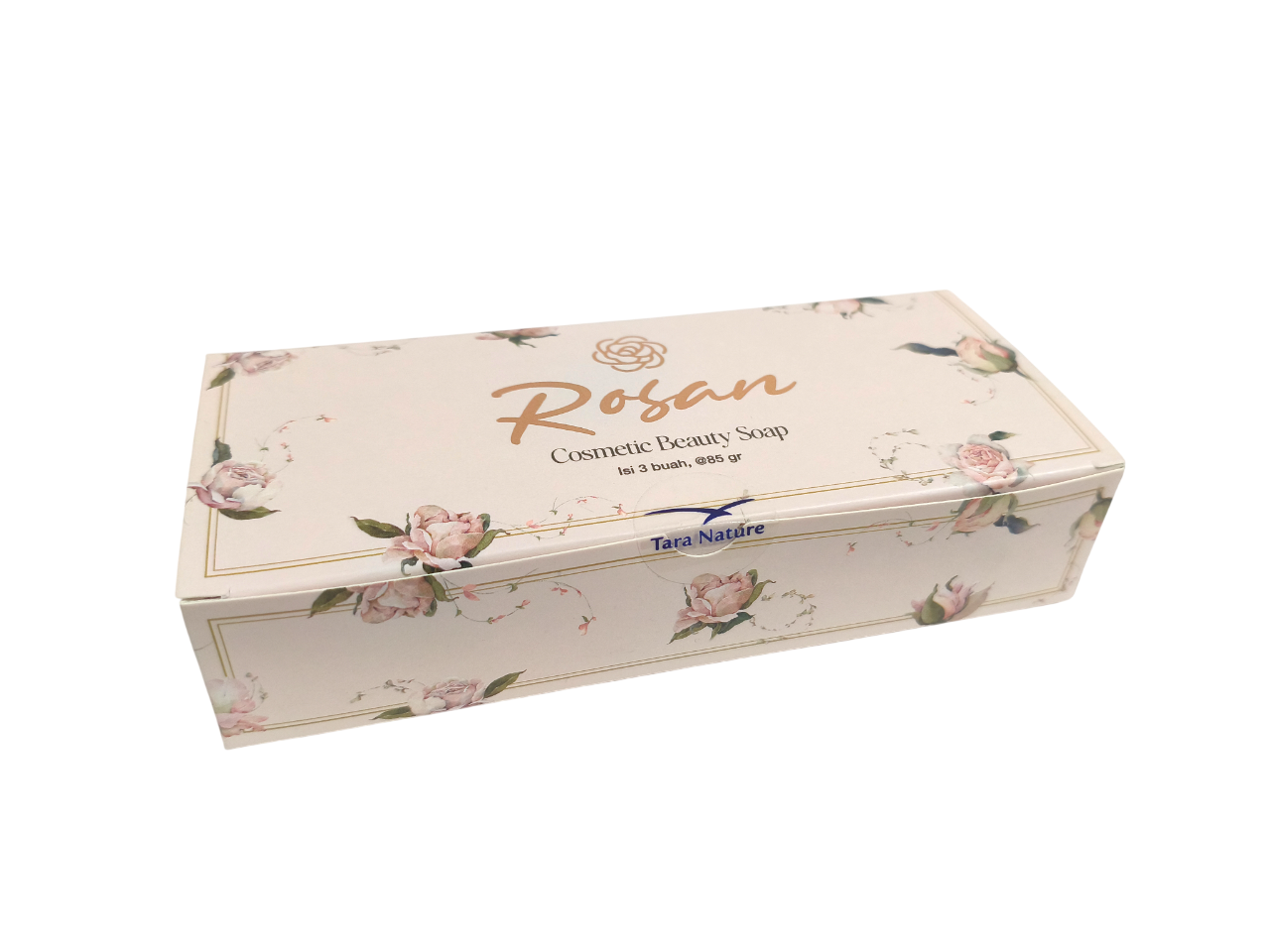 Rosan, sabun mandi keluarga untuk membersihkan dan menjaga kelembaban kulit dengan aroma bunga mawar (rose) yang lembut.